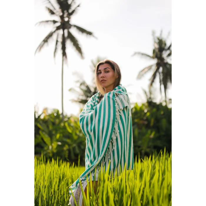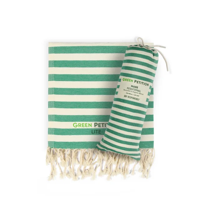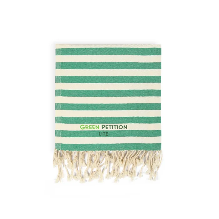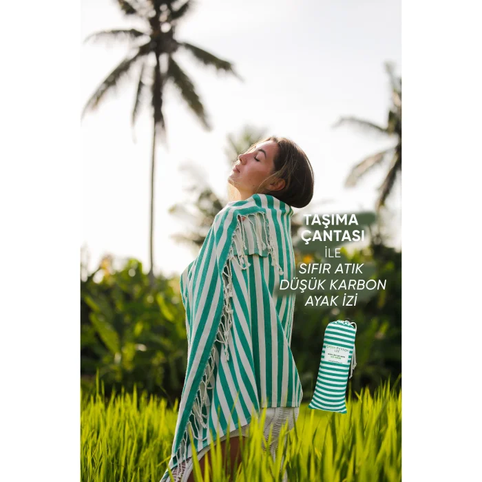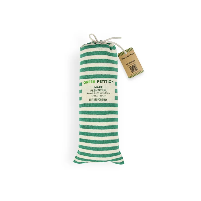 Environmentally friendly: 10 plastic bottles used for each peshtemal were turned into polyester threads. Sustainable: For each loincloth, 5 waste t-shirt fabrics were recycled into improved cotton yarns. Dye-free and Chemical-free: There was no use of dyes or chemicals at any stage of production. We obtained the dyed fabrics of the original materials of your peshtemal. Sea Friendly: We saved 5000 liters (1320.9 gal) of clean water for each loincloth. FEATURES Light and Portable: Don't worry about portability. Thanks to its 190 gram weight and light structure, it takes up minimum space in your beach bag or special carrying case. Ideal Size: Your 90x170 cm loincloth makes your beach experience more comfortable with its large size. Multi-Purpose Carrying Bag: You don't just buy a loincloth, you can use the practical bag of your loincloth for your beach accessory. Recycled and Reusable Package: You can reuse the special bags that are recycled and have dimensions of 34 x 14 cm. Wherever you can take your peshtemal while traveling in a special, sustainable bag, you can't easily keep it down.