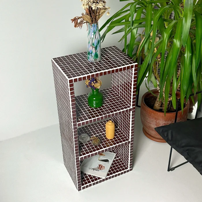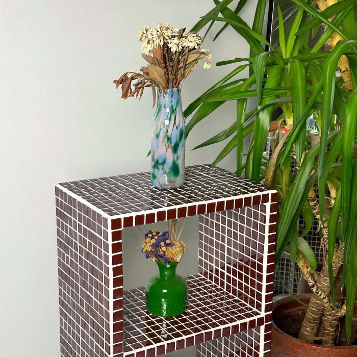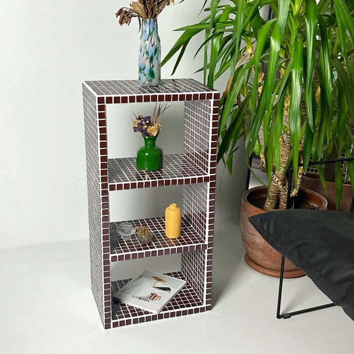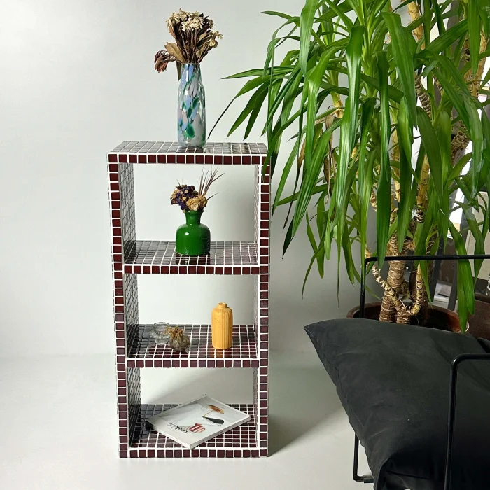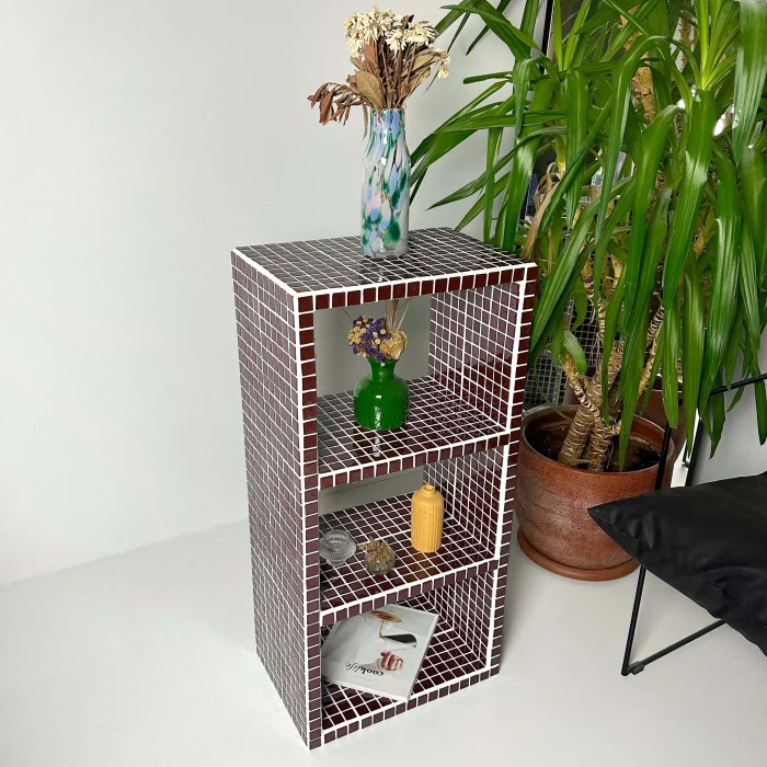 Size: 44X30X94h Weight: 40 kg Coating: Ceramic, glass mosaic or natural stone Internal skeleton: Wood Uses: Indoors only Delivery: 21 working days Made to order Since it is a handmade product, minor errors may appear