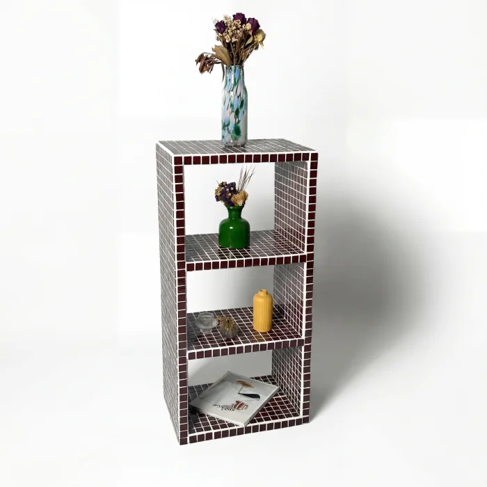 Size: 44X30X92h Weight: 40 kg Coating: Ceramic, glass mosaic or natural stone Internal skeleton: Wood Uses: Indoors only Delivery: 21 working days Made to order Since it is a handmade product, minor errors may appear