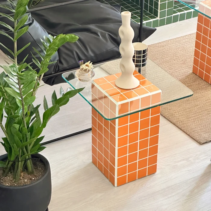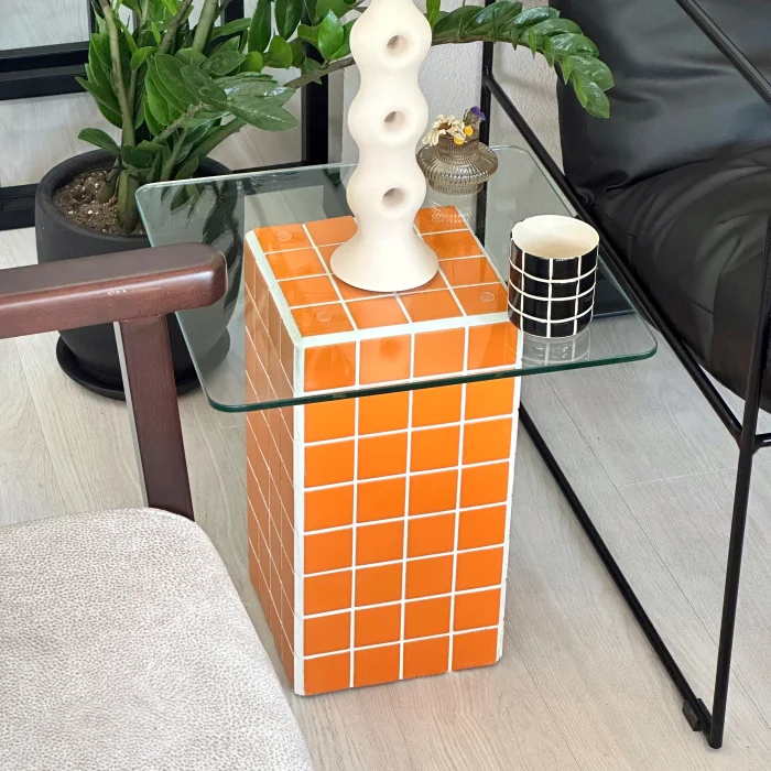 Size: 40X40X40h Weight: 10 kg Coating: Ceramic, glass mosaic or natural stone Internal skeleton: Wood Uses: Indoors only Delivery: 21 working days Made to order Since it is a handmade product, minor errors may appear
