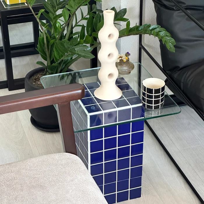 Size: 40X40X40h Weight: 10 kg Coating: Ceramic, glass mosaic or natural stone Internal skeleton: Wood Uses: Indoors only Delivery: 21 working days Made to order Since it is a handmade product, minor errors may appear