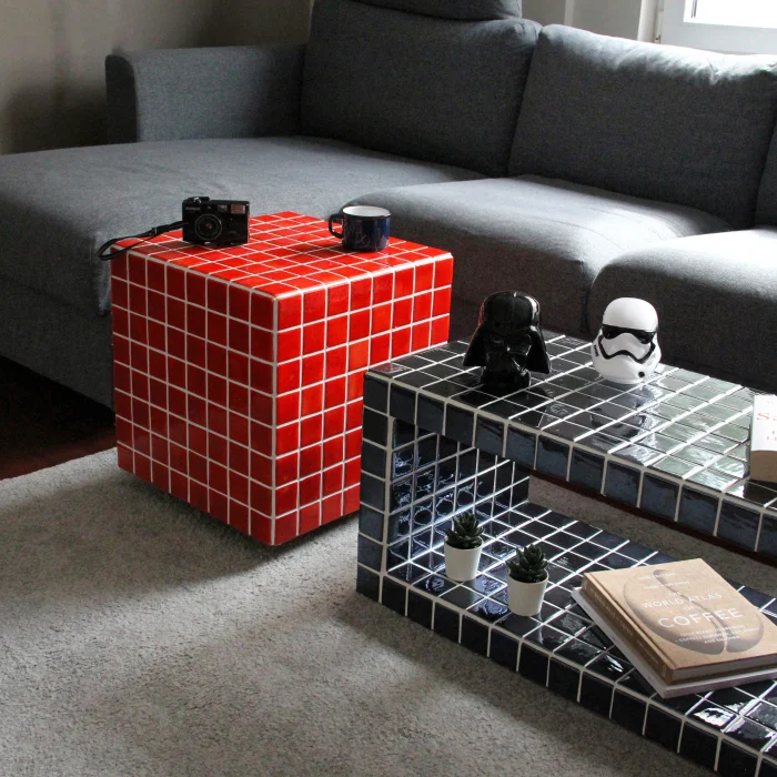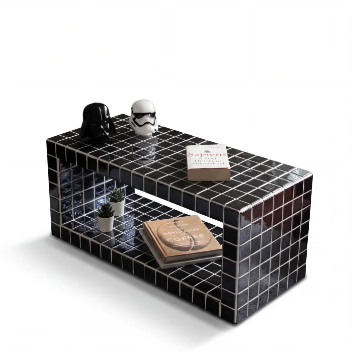 Size: 76X38X38h Weight: 35 kg Coating: Ceramic, glass mosaic or natural stone Internal skeleton: Wood Uses: Indoors only Delivery: 21 working days Made to order Since it is a handmade product, minor errors may appear