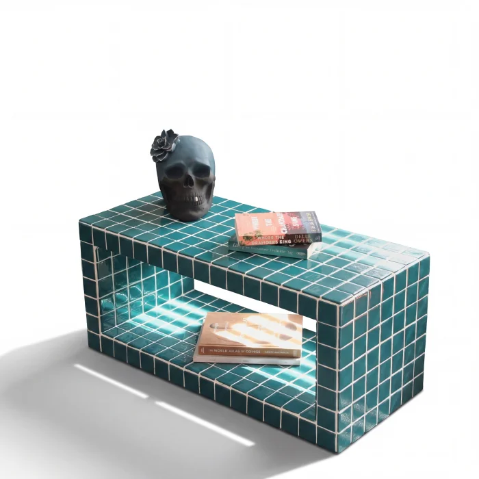 Size: 76X38X38h Weight: 35 kg Coating: Ceramic, glass mosaic or natural stone Internal skeleton: Wood Uses: Indoors only Delivery: 21 working days Made to order Since it is a handmade product, minor errors may appear