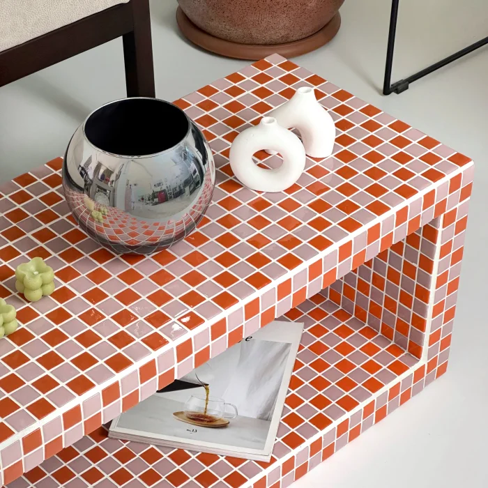 Size: 76X38X38h Weight: 35 kg Coating: Ceramic, glass mosaic or natural stone Internal skeleton: Wood Uses: Indoors only Delivery: 21 working days Made to order Since it is a handmade product, minor errors may appear