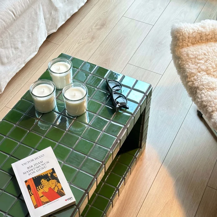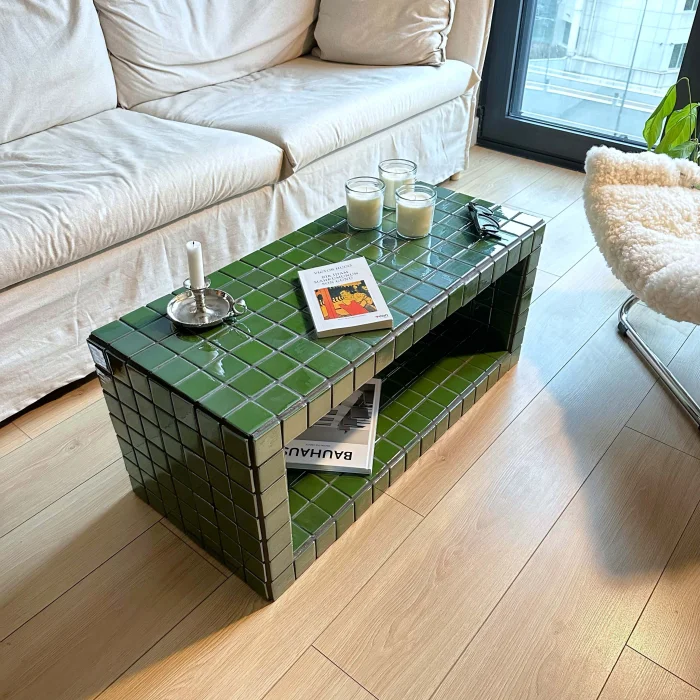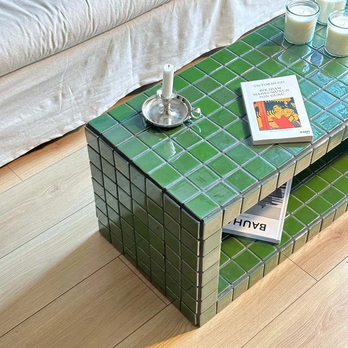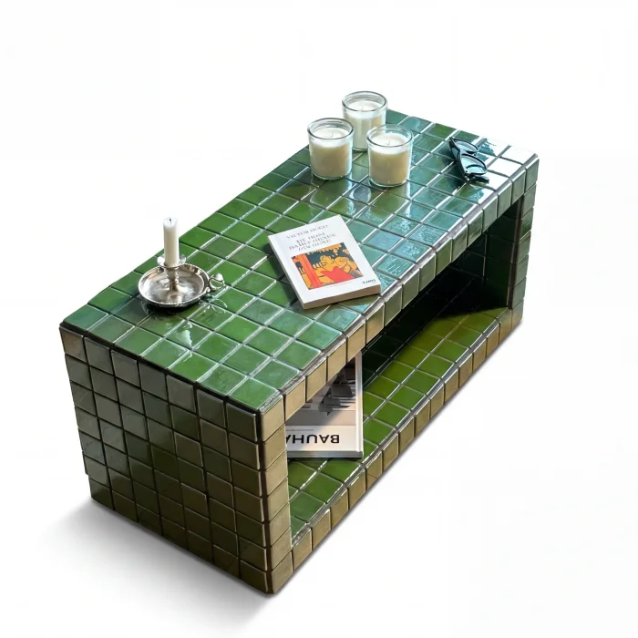 Size: 76X38X38h Weight: 35 kg Coating: Ceramic, glass mosaic or natural stone Internal skeleton: Wood Uses: Indoors only Delivery: 21 working days Made to order Since it is a handmade product, minor errors may appear