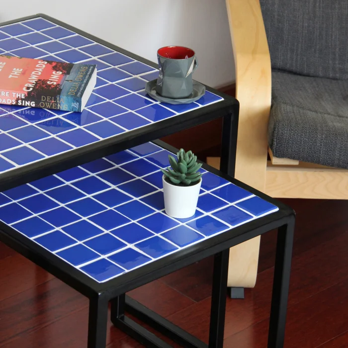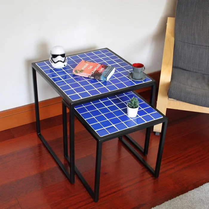Measures: 41X41X41h 51X51X51h Pieces Weight: 7 kg Coating: Ceramic, glass mosaic or natural stone Frame: Metal Uses: Indoors and outdoors Delivery: 21 working days Made to order Since it is a handmade product, minor errors may appear