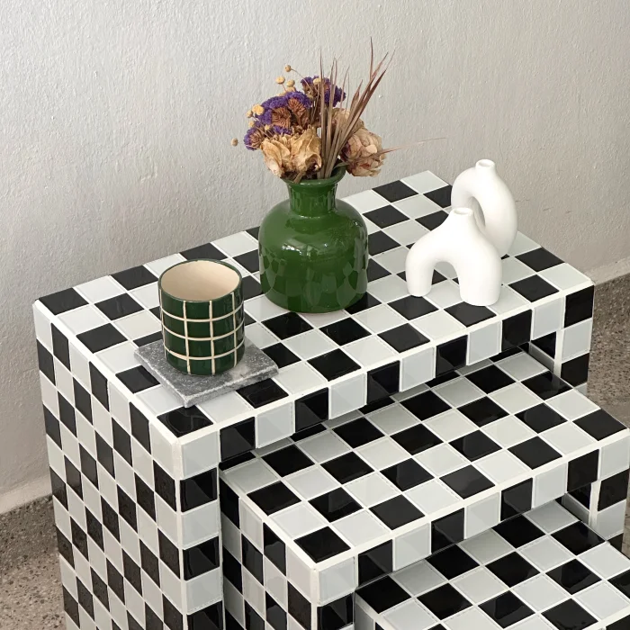 Measures: 24 x 28 x 36H 36 x 28 x 44H 48 x 28 x 52H Total Weight: 45 Kg Coating: Ceramic, Glass Mosaic Or Natural Stone Internal Skeleton: Wood Uses: Indoors Only Delivery: 25 Working Days Made To Order Can Be Produced İn Any Color Since İt İs A Handmade Product, Minor Errors May Appear Less