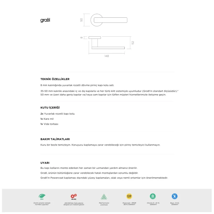The order includes a total of 1 pairs (front/back) – 2 door handles in total. The "keyhole escutcheon" compatible with the door handles is not included in the package content. It must be ordered separately or selected from products offered as a set.