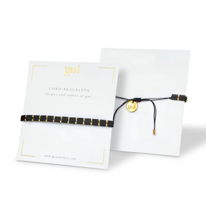 Edge bracelets are handcrafted using angular glass beads. Thanks to its adjustable cord, it adapts to different wrist thicknesses.