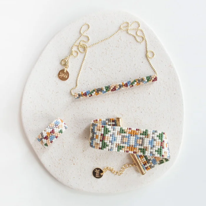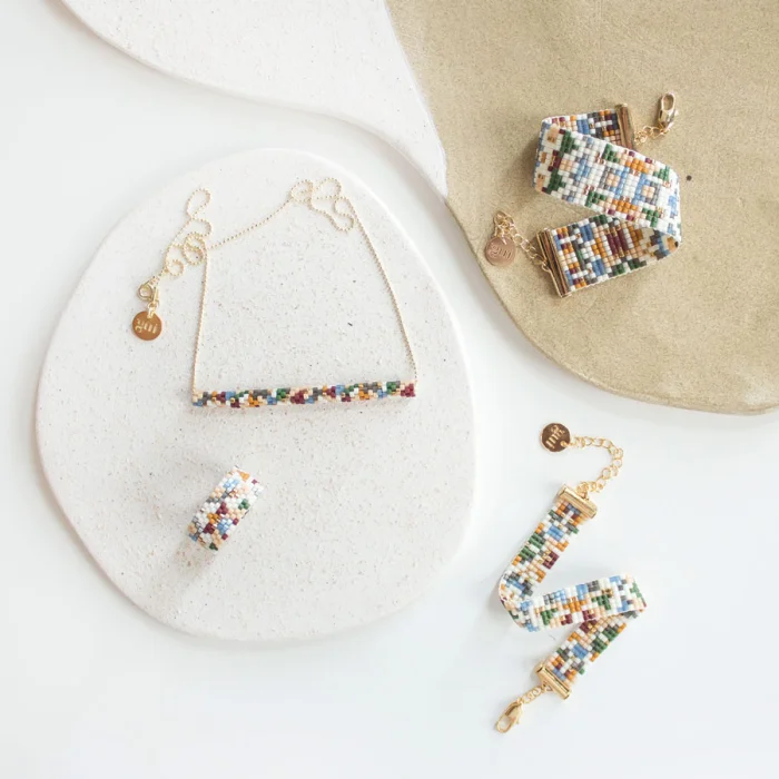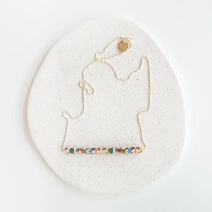 Necklaces are produced by sewing glass beads. Necklace chains are 22K micron gold plated. Pendant width : 6,3 cm