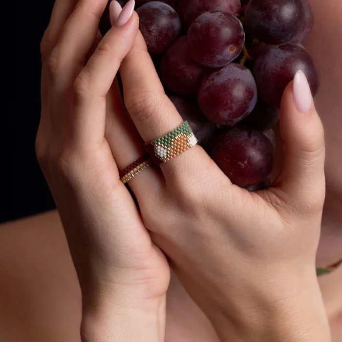 The Wave Green ring is made with glass beads.Product: Wave RingDesigner: GuiProduct Code: GR-100-WAVE-3-L