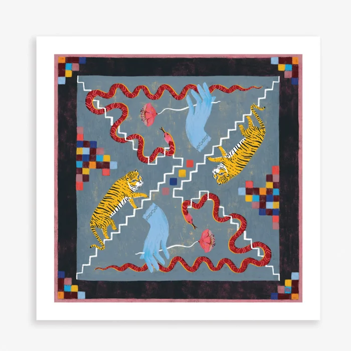 This illustration by Günseli Sepici will be printed on textured, 280gsm, professional paper using archival inks. We print the design with a 2.5cm border for framing and ship it to your address without a frame in sturdy mailing tubes. Stay with love.