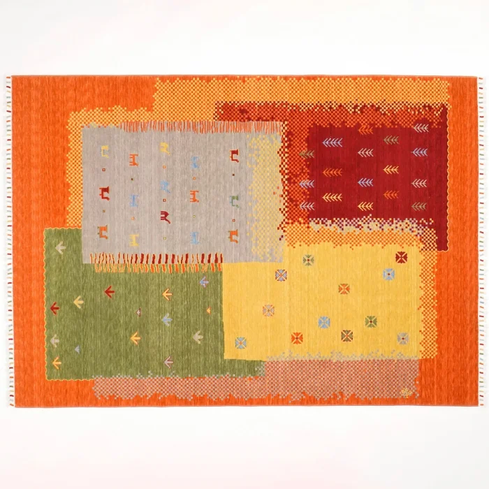 Tempus Series Modern Authentic Patterned Colorful Wool Special Loom Carpet is a special collection piece that is produced with Halıcızade's 20 years of knowledge and experience and offers modern and authentic textures together. The texture of the carpet is in the texture of the wool hand-woven carpet you are used to. Thanks to its special weaving technique, it has the appearance of a hand-woven carpet. This carpet, whose surface is entirely made of wool, does not collect dust and is comfortable to use thanks to its moderate thickness and dense weaving. The icon of the tree of life of Halicizade engraved on the carpet guarantees its authenticity and quality. The vibrant orange tones add energy and warmth to the carpet, while the red, yellow, green, and gray colors create a dynamic atmosphere. The combination of these colors creates a warm and inviting environment while reinforcing the overall aesthetic of your room. It is the carpet of happy people with its warming coloring and authentic patterns, such as the words of a friend from our team when he first sees it, "I am happy when I look at this carpet". Woven in the Aegean Region of Anatolia, the Tempus Series Modern Authentic Patterned Colorful Wool Special Loom Carpet combines traditional weaving culture with modern technology, giving your home both historical depth and contemporary elegance.  Tempus series carpets are produced entirely with wool natural yarns and are an excellent option for those looking for naturalness. Thanks to its medium-thick dense weaving, it does not hold dust and is very comfortable to use. It has the appearance of a hand-woven carpet with its special weaving technique and brings the classic carpet texture to your home. The tree of life icon exclusive to Halıcızade makes these carpets unique and offers a collection that you won't find anywhere else. These carpets, woven in the Aegean Region, combine the deep-rooted weaving culture of the region with modern technology. It can be used in various parts of the living space such as living room, living room, entrance, bedroom. It is perfect for children's rooms.