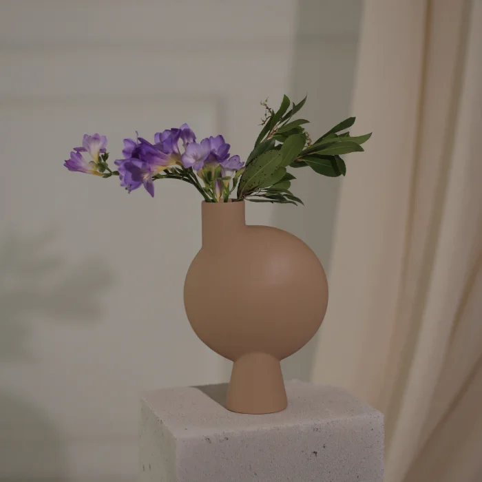 Handmade ceramic vase. As it is a hand-glazed natural product, colors may vary slightly and a bag for fresh flowers is included, although it is not 100% waterproof.