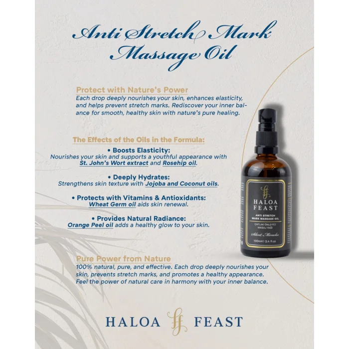 Discover the secret to soft, smooth, and healthy skin with Haloa Feast Stretch Mark Prevention Body Massage Oil. Order now and let nature’s miracle nurture your skin!