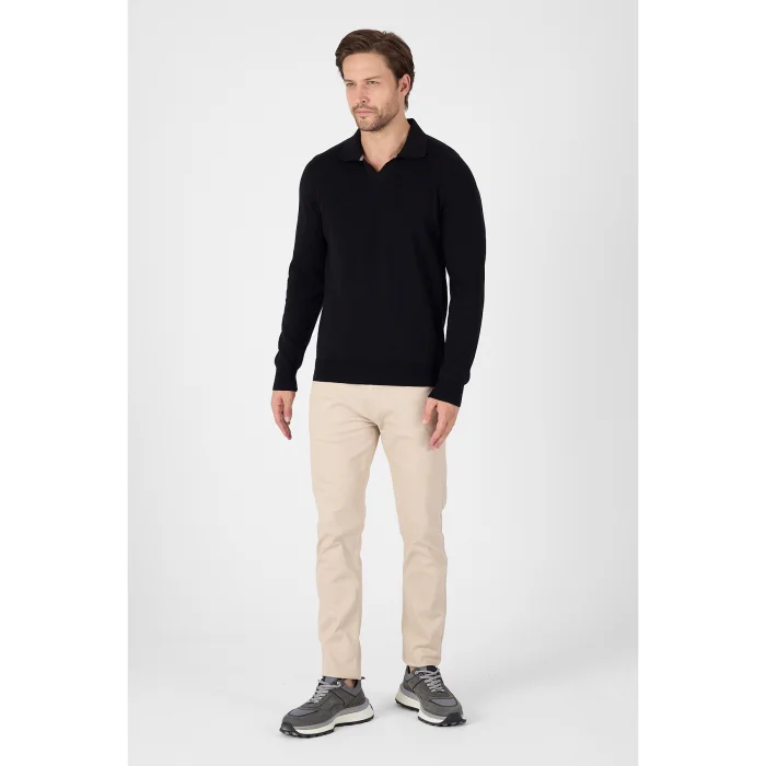 Pure 100% Cotton Buttonless Polo Sweater is designed for those seeking a minimal and refined style. The buttonless placket polo collar offers a clean and modern look, while the cotton knit fabric provides softness and breathability. With its tailored fit, this sweater delivers a contemporary silhouette and becomes an essential piece for transitional seasons.