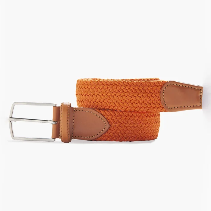 Product: Genuine Leather-detail Elastic Braided Belt