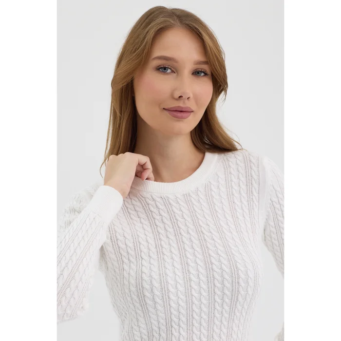 Product: Women's Pure 100% Cotton Cable-knit Crew Neck Sweater