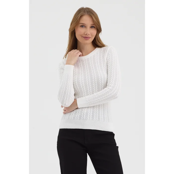 Product: Women's Pure 100% Cotton Cable-knit Crew Neck Sweater