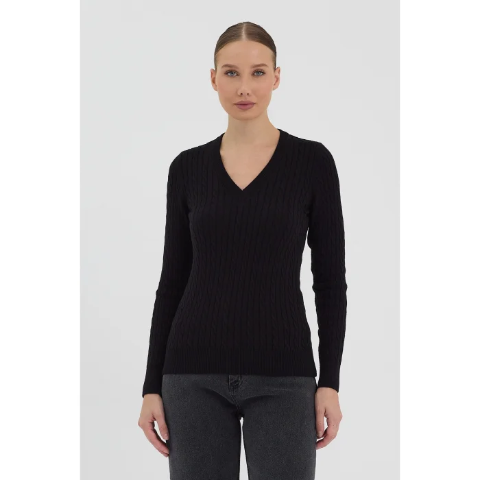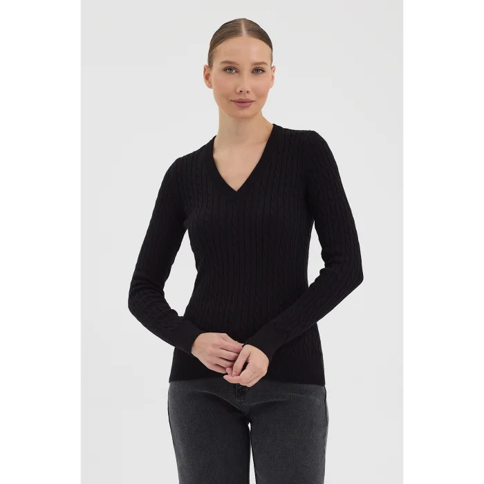 Product: Women's Pure 100% Cotton Cable-knit V-neck Sweater