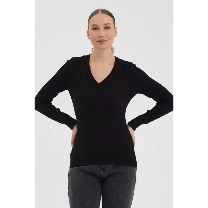 Product: Women's Pure 100% Cotton Cable-knit V-neck Sweater