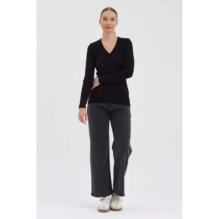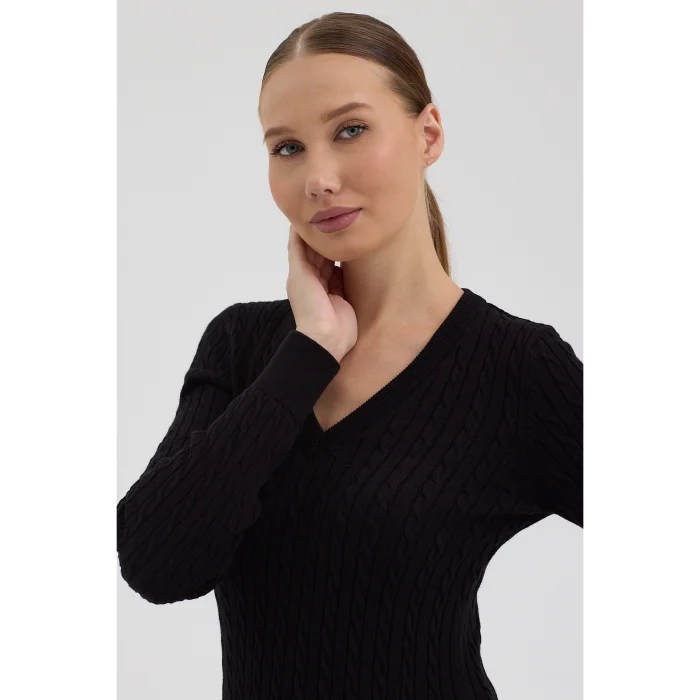 Product: Women's Pure 100% Cotton Cable-knit V-neck Sweater