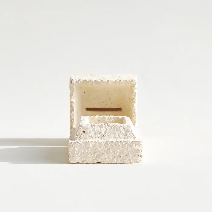 Biodegradable, mycelium-based ring boxes. The box is suitable for storing 1 ring. Any type of ring with or without a stone can be stored inside.