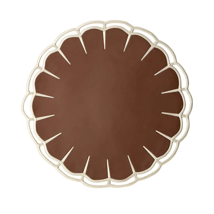 Product Dimensions: Diameter: 41 cm Color Types: Tan - Cream Embroidery / Tan - Coffee Embroidery / Cream - Cappuccino Embroidery / Black - Cream Embroidery / Burgundy - Burgundy Embroidery / Coffee - Coffee Embroidery / Navy Blue - Navy Blue Embroidery / Cream - Navy Blue Embroidery Material Type: Embroidery on leather.