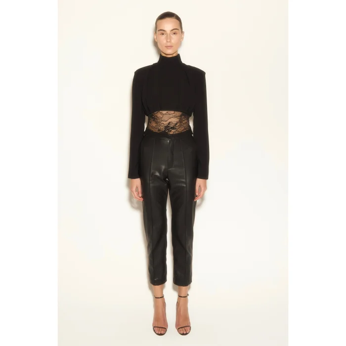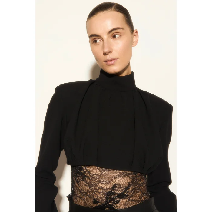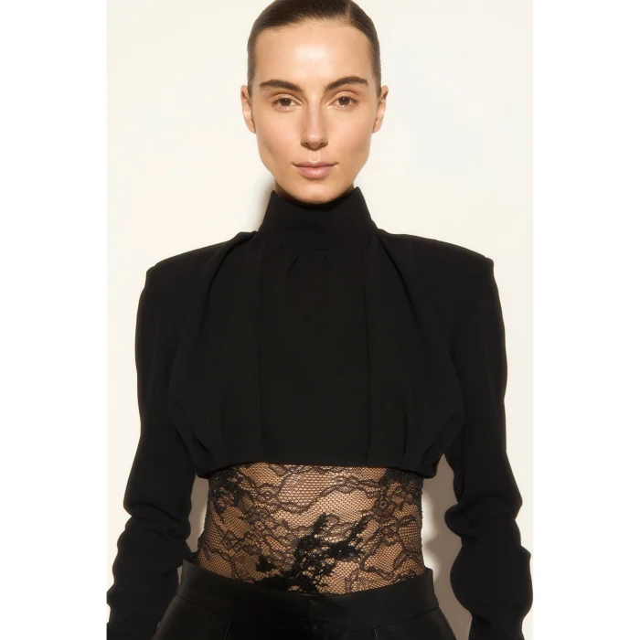 Black, long-sleeved crop blouse with lace corset detailProduct: Contrast TopDesigner: HerfetchProduct Code: H000648This product will be sent by Herfetch on behalf of hipicon