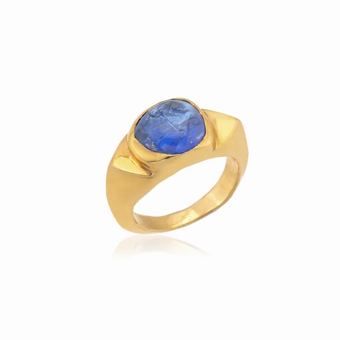 Aurelius Ring is made with recycled 925 sterling silver 24ct gold plated. Completely handmade and set with a rare stone called Tanzanite.