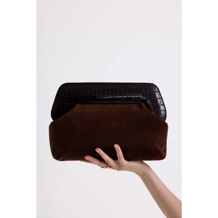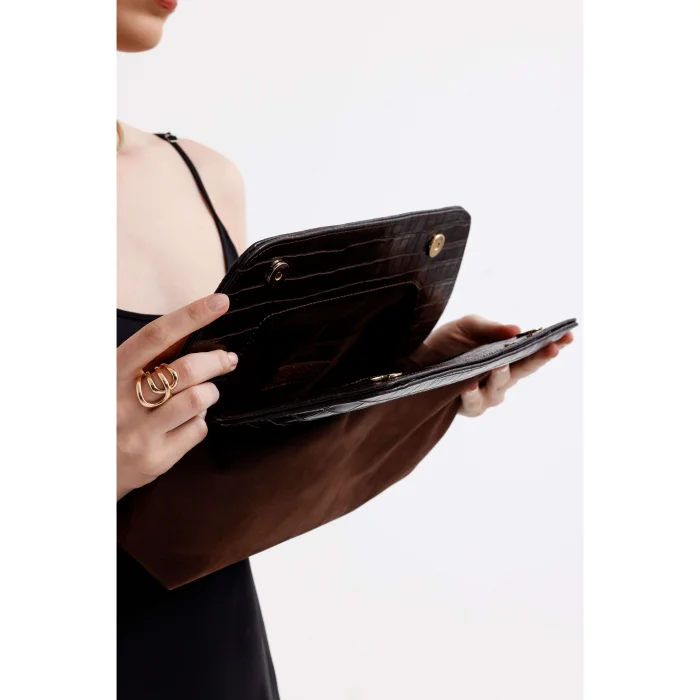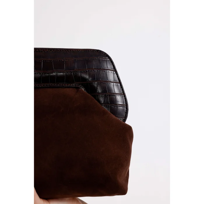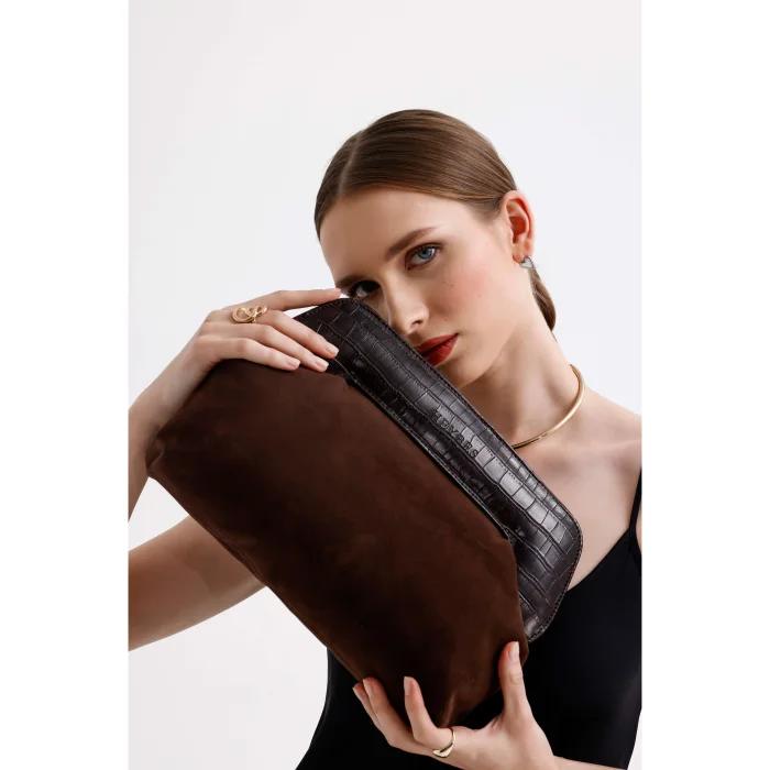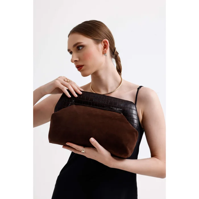 Product: Leather Detailed Suede Clutch Handbag