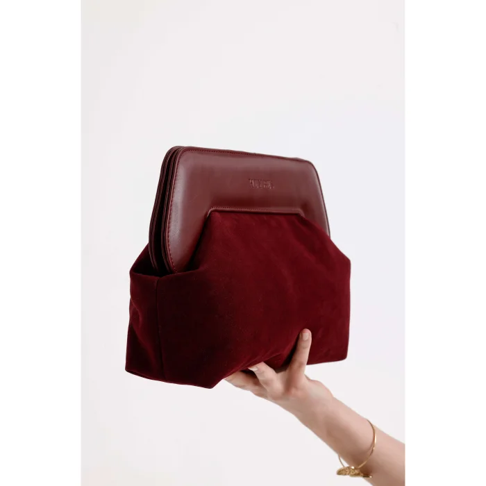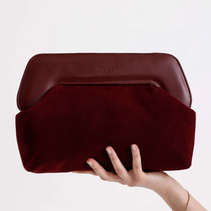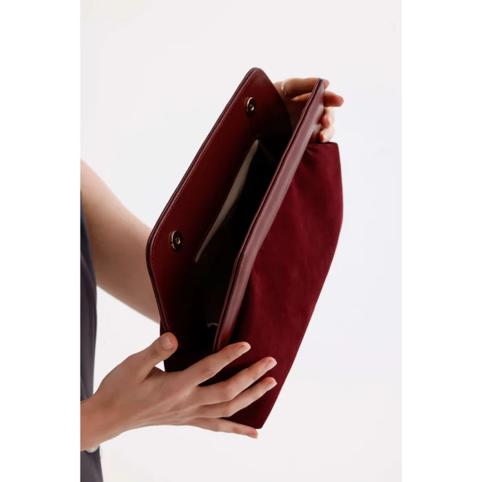 Product: Leather Detailed Suede Clutch Handbag