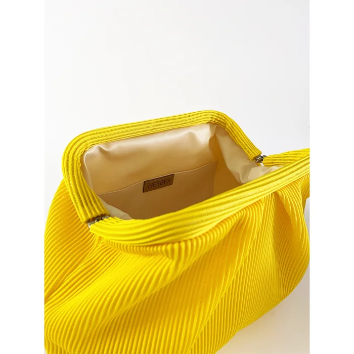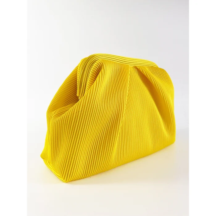 Made of pleated fabric, this clutch stands out with its elegant texture. The interior is covered with a faux leather lining and has a convenient inner pocket. Measuring 28 x 19 x 10 cm, its compact design makes it an ideal choice for both casual and evening chic.