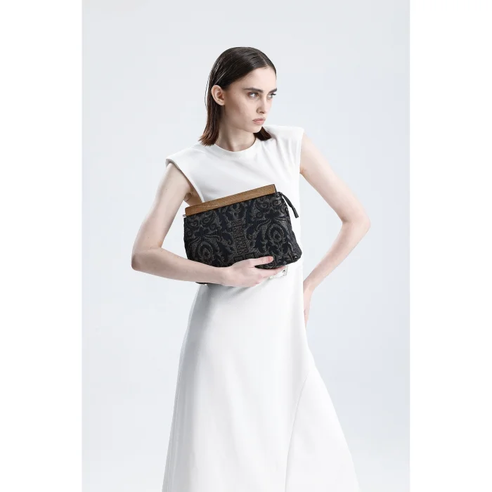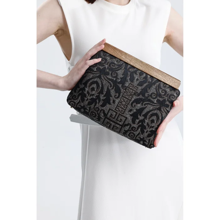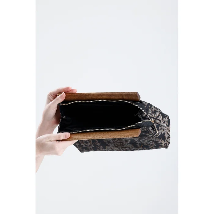 Wooden Detailed Authentic Pattern Hand Bag