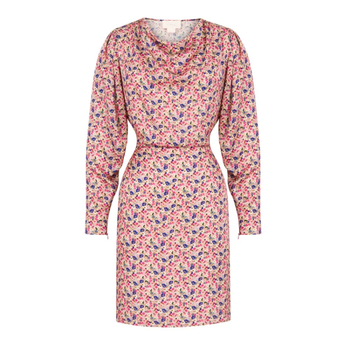Cowl Neck Long Sleeved Patterned Mini Dress Pink