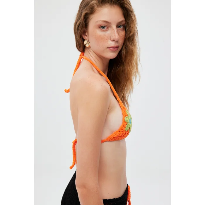 Product: Floral Embroidered Hand Knitted Bikini Top
