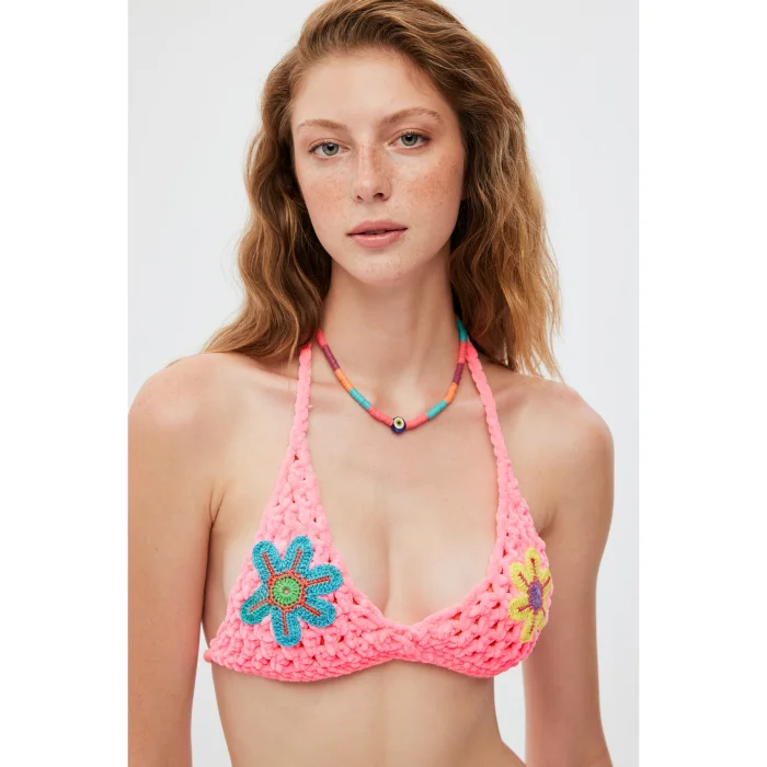 Product: Floral Embroidered Hand Knitted Bikini Top