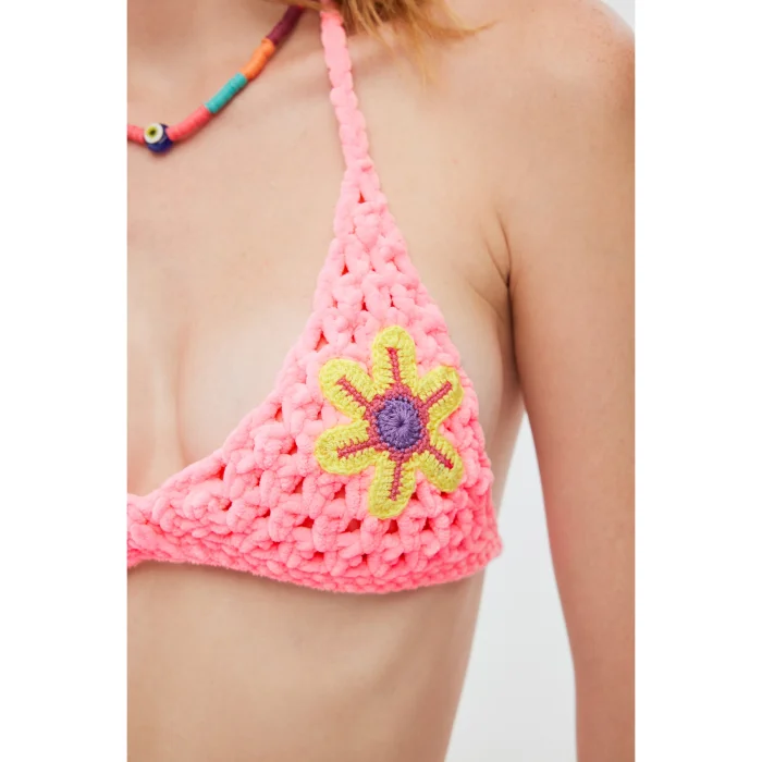 Product: Floral Embroidered Hand Knitted Bikini Top