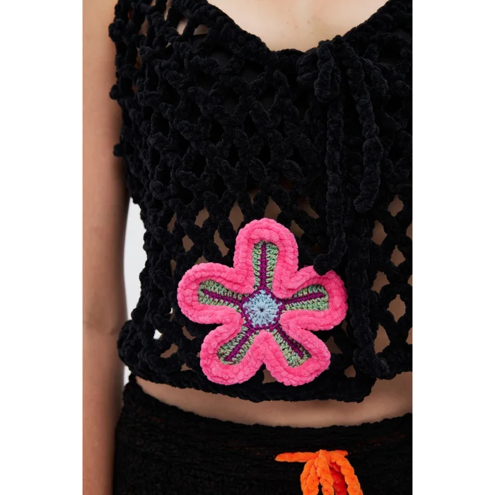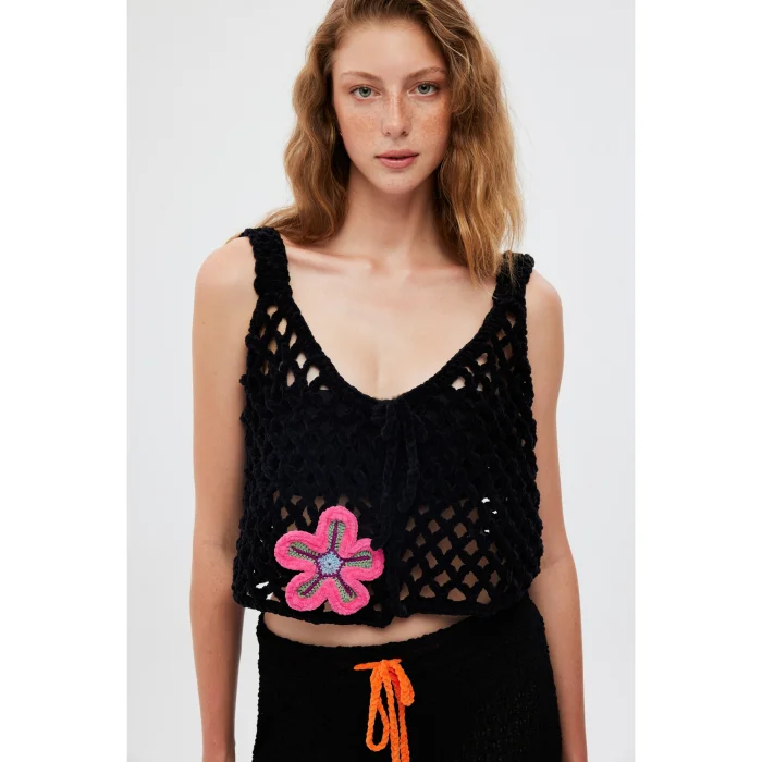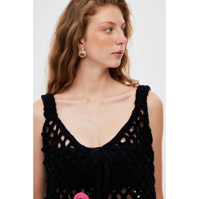 Product: Hand Knitted Velvet Flower Embroidered Vest