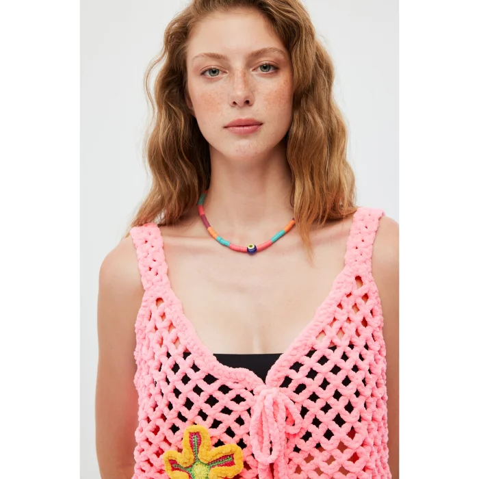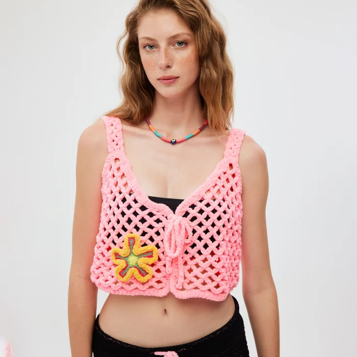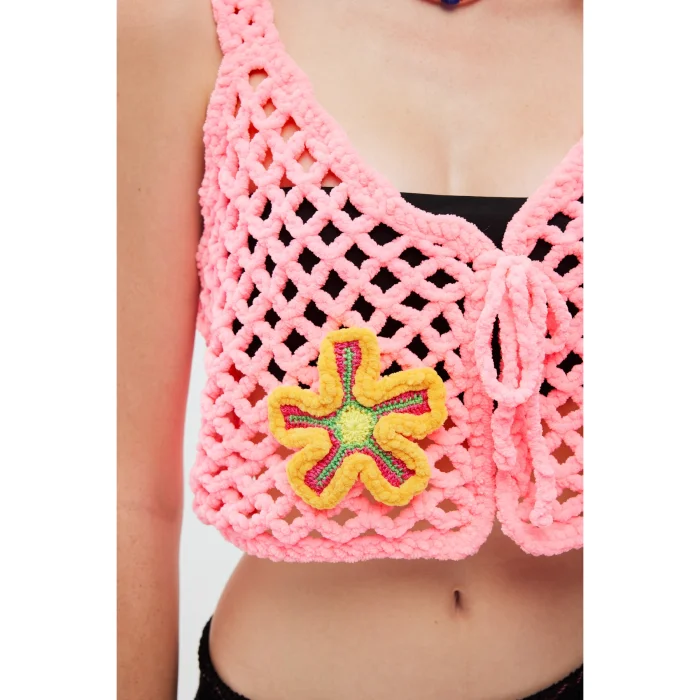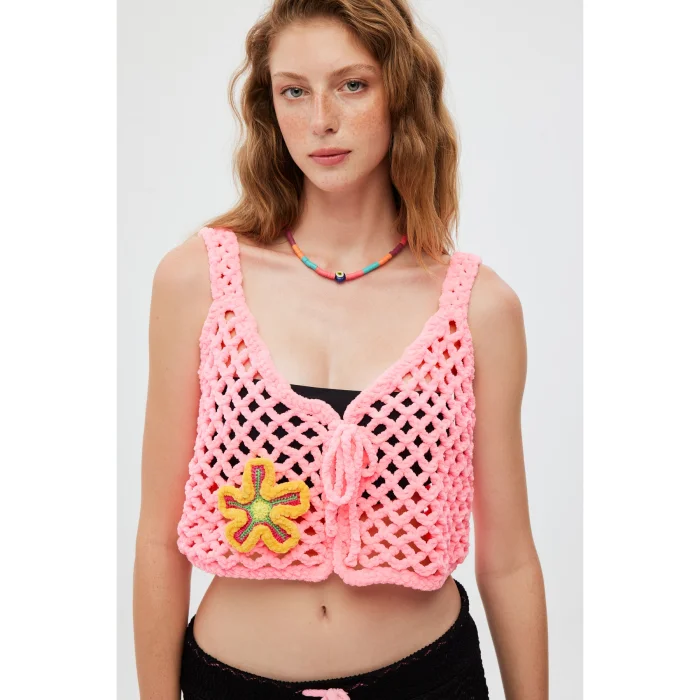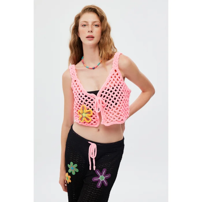 Product: Hand Knitted Velvet Flower Embroidered Vest