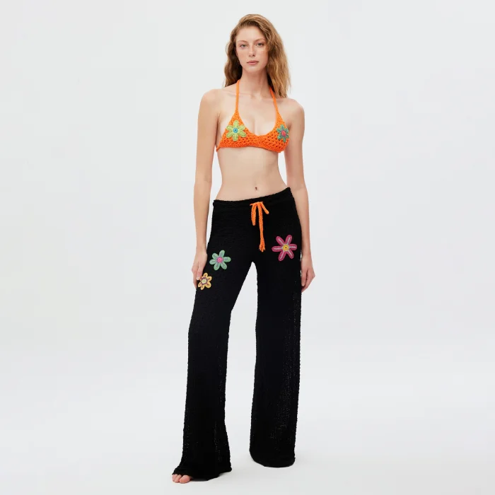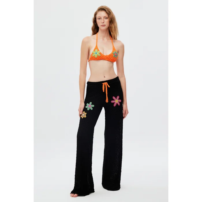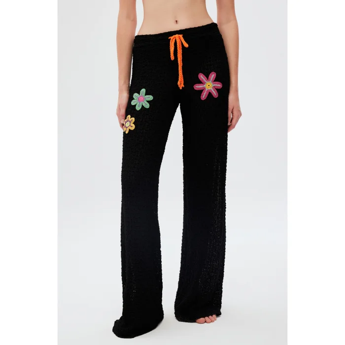Product: Velvet Flower Embroidered Beach Trousers