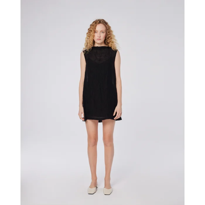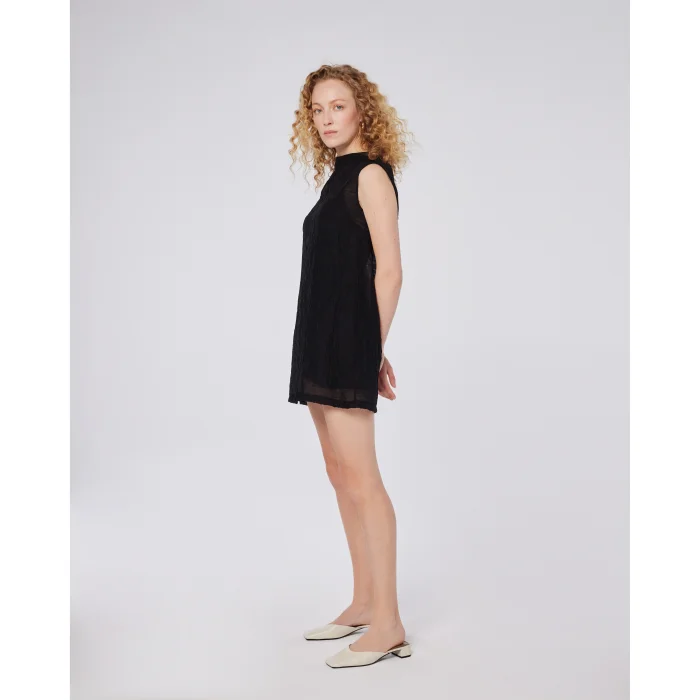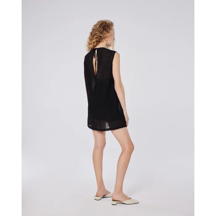 A lightweight and effortlessly chic mini dress, blending modern simplicity with subtle texture.