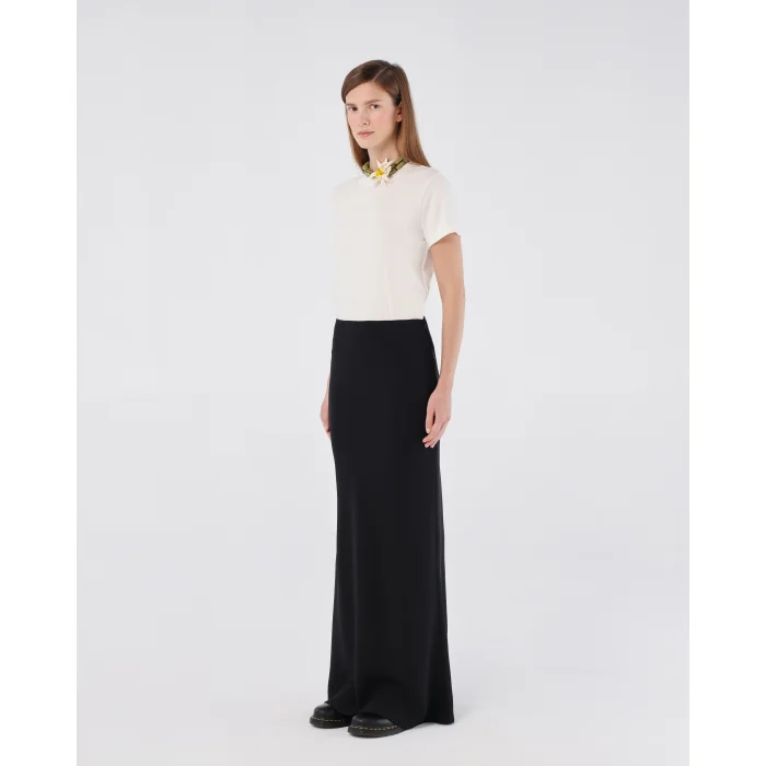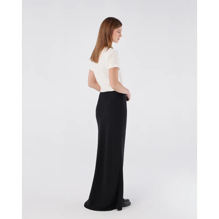 Sits comfortably at the hips for a relaxed, natural fit. Flows into a full-length, soft drape for a graceful look and easy movement. Features a side zipper for a seamless and secure fit. Made from lightweight fabric, offering a combination of comfort and elegance. The model is 174 cm tall and is wearing size XS. This skirt provides effortless elegance, perfect for both casual and formal styling.