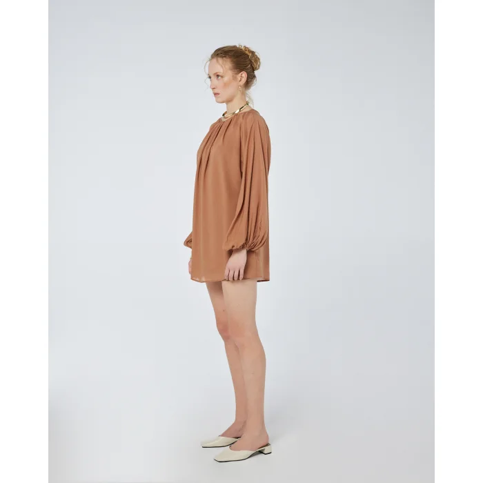 A timeless, airy mini dress designed for effortless sophistication, blending soft volume with refined minimalism.