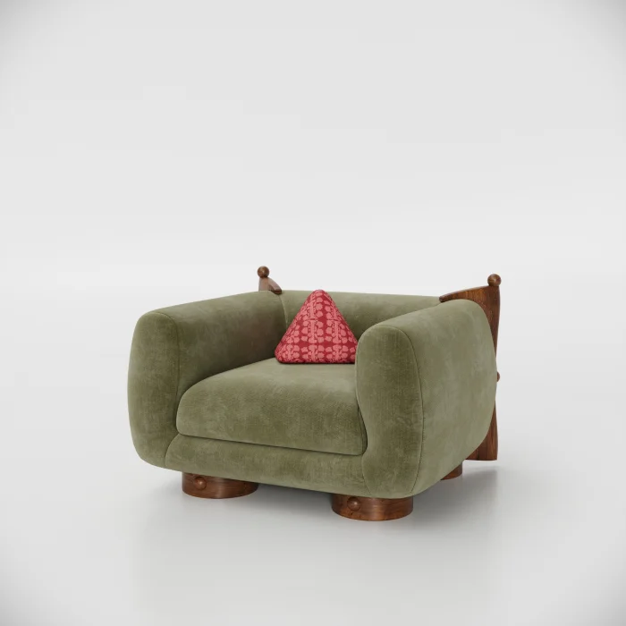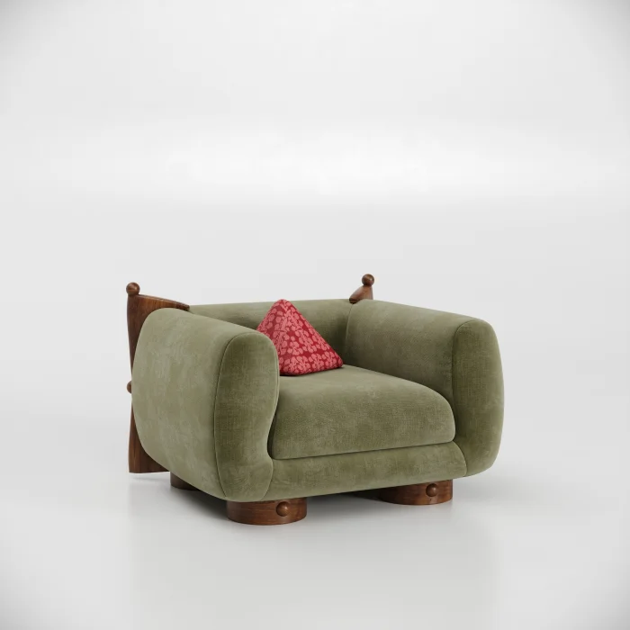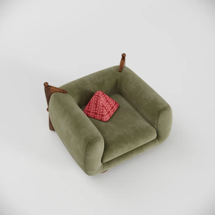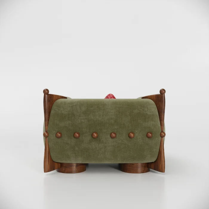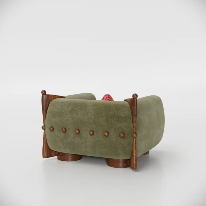 The delicacy of the French art of living is blended in a balanced way with the dynamics of modern life. Hemispherical wooden details on the back of the seat, lathe drawing workmanship on the legs and brooch details used on the back; It brings together the aesthetic values of the past with today's design approach.