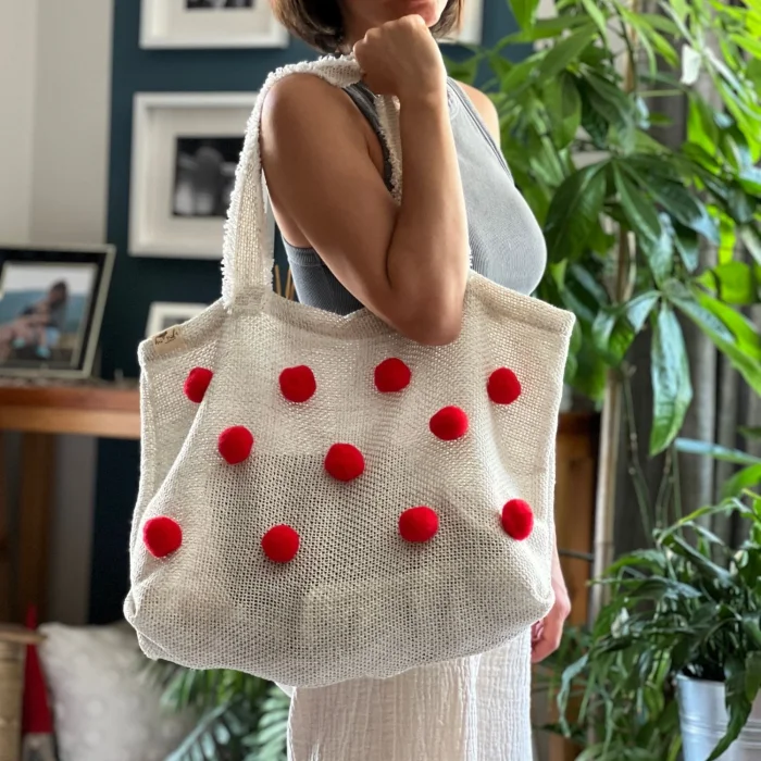 Product: Handmade Red Pom-pom Bag