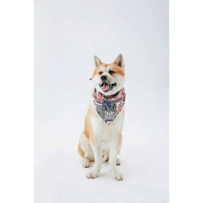Printed dog bandana made of 100% cotton satin fabric. You can view our size chart in the photo gallery.