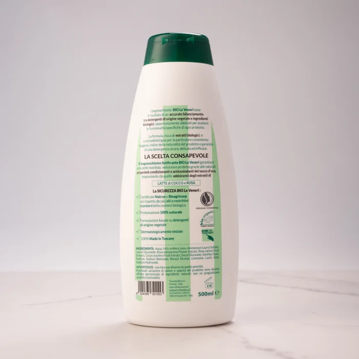 Organic grape juice with a blend of coconut milk and rose extract come together in this eco-friendly recyclable bottle to give your skin a silky touch. With only 15 ingredients certified to the highest level by NATRUE, our bio-organic range ensures a gentle and safe cleaning suitable for daily use, thanks to cleaners of natural origin and at least 95% organic ingredients. Bio Le Veneri Natural & Organic Silky Shower Gel gives sensitive skin the emollient care it needs.