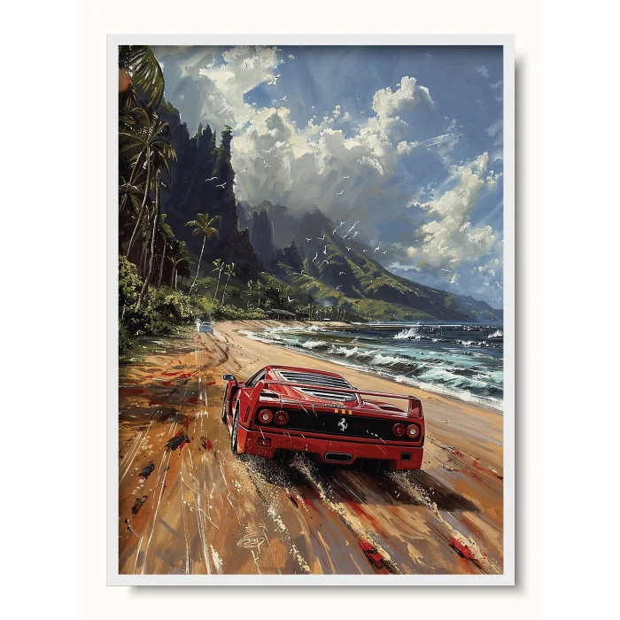 A Ferrari F40 speeding down Kahalu'u Beach.