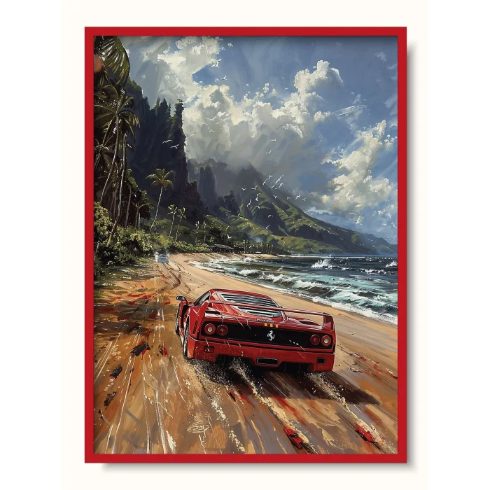 A Ferrari F40 speeding down Kahalu'u Beach.